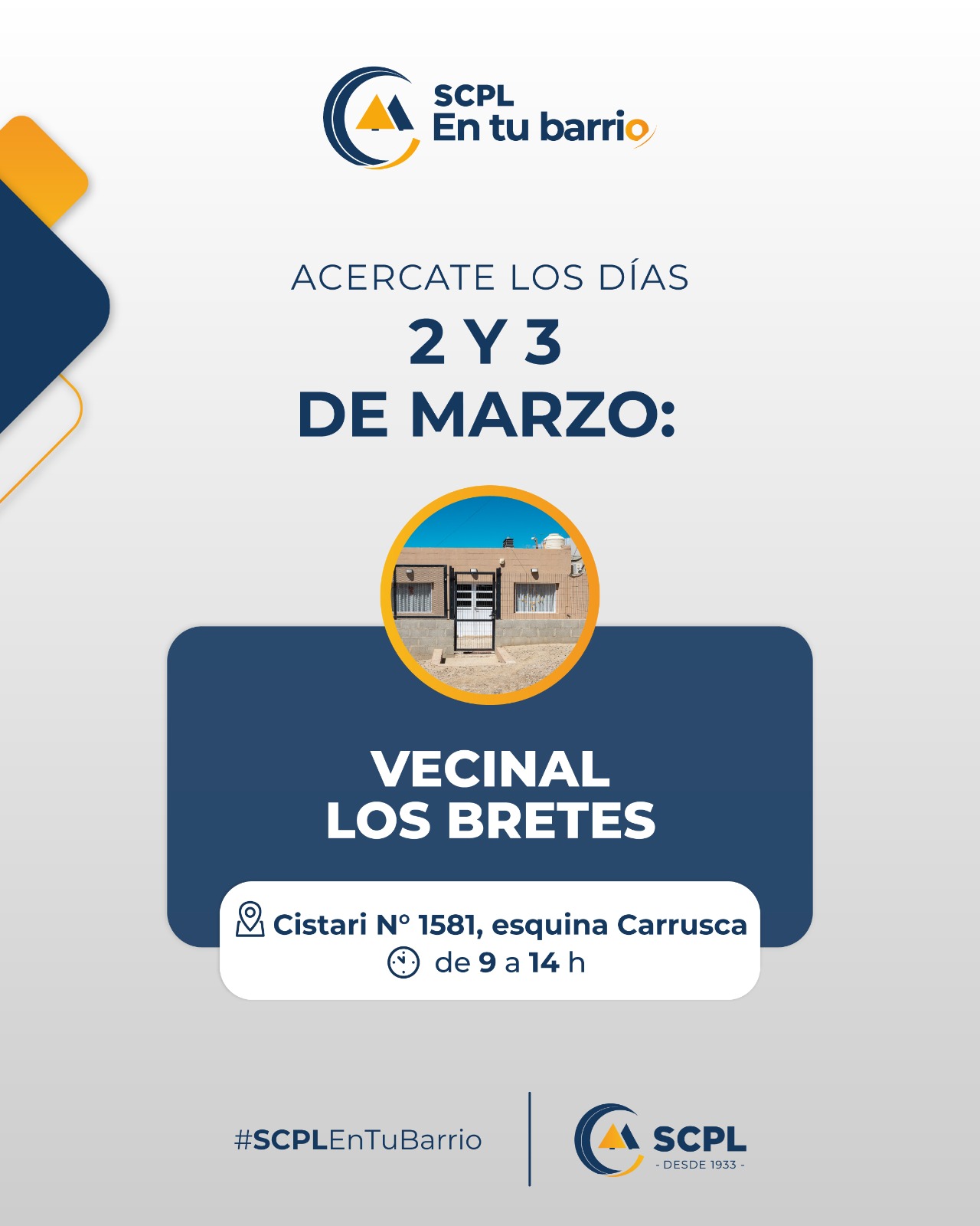 El programa social “SCPL en tu barrio”, recorre desde 2019 distintos barrios de la ciudad, llevando la Cooperativa a la comunidad para fortalecer el vínculo con los vecinos y permitir un mejor acceso a los trámites comerciales y la regularización de los servicios esenciales. En la edición 2026, el programa visitará cada zona de la ciudad, cuatro veces a la semana, dos días por barrio, para brindar la atención que cada socio y usuario requiere.